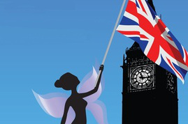 The costumes (designed by Denise Young) were among the most attractive I have seen in a recent G&S production. The women’s chorus wore dresses in a rainbow of sherbet colors, nicely echoed by the colors in Dawson Smith’s varied lighting design. In addition to their first act hunting garb, the men wore, in the second act, tuxedo-like formal outfits accented with red sashes. Rebecca Myerson’s first act set consisted of a couple pretty groves of trees, one set over a bridge; the second act set, showing Westminster in the background, was even more effective. Iolanthe is not a prop-heavy show, but the production used stuffed animals – a sheep for Strephon and Phyllis and a teddy bear for the Lord Chancellor – to good effect.